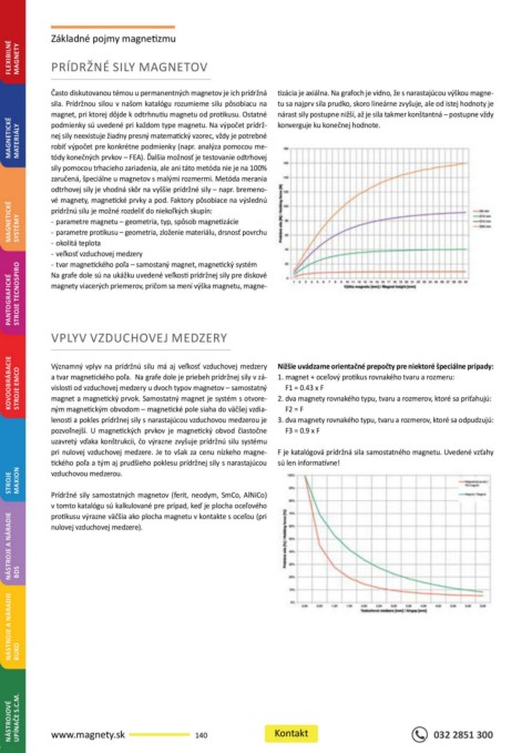 pri nulovej vzduchovej medzere. Je to však za cenu nízkeho magne- F je katalógová prídržná sila samostatného magnetu. Uvedené vzťahy