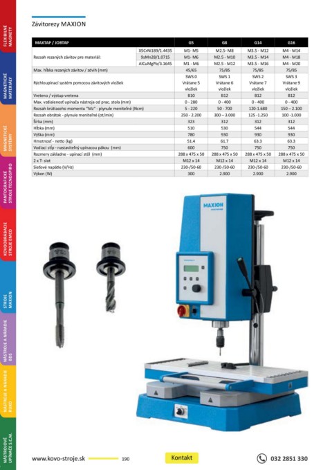NÁSTROJOVÉ   UPÍNAČE S.C.M.  www.kovo-stroje.sk  190       Kontakt                             032 2851 330