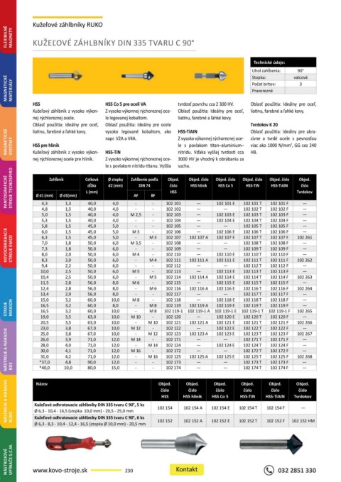 NÁSTROJE A NÁRADIE   RUKO  Kužeľové odhrotovacie záhlbníky DIN 335 tvaru C 90°, 5 ks    102 154   102 154 A   102 154 E   102 154 T  HSS-TiAIN   102 152 HM