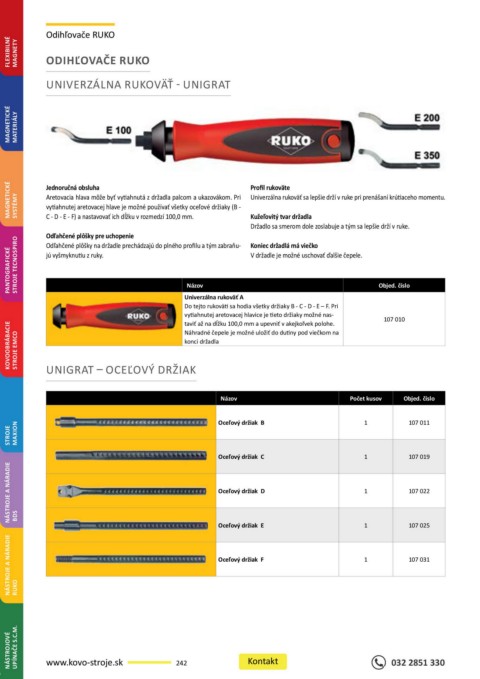 NÁSTROJOVÉ UPÍNAČE S.C.M. www.kovo-stroje.sk 242 Kontakt 032 2851 330