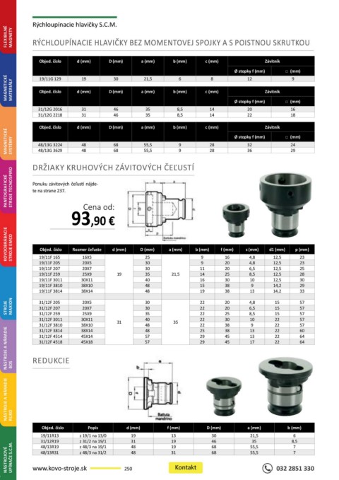 NÁSTROJOVÉ UPÍNAČE S.C.M. www.kovo-stroje.sk 250 48 31 Kontakt 68 55,5 032 2851 330
