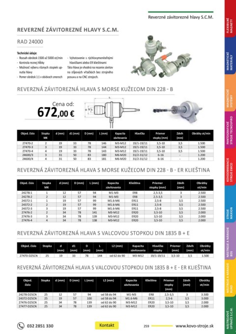 REVERZNÁ ZÁVITOREZNÁ HLAVA S MORSE KUŽEĽOM DIN 228 - B - ER KLIEŠTINA