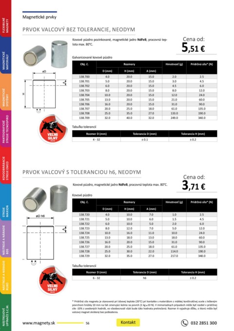 Kovové púzdro, magnetické jadro NdFeB, pracovná teplota max. 80°C. Cena od: