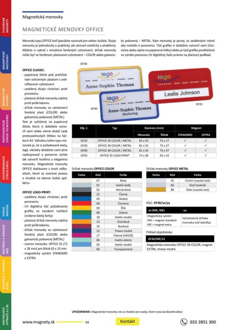 KOVOOBRÁBACIE STROJE EMCO menovku. Magnetické menovky Držiak menovky OFFICE COLOR Farba Držiak menovky OFFICE METAL Farba